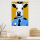 Cute and adorable Cow in blue police uniform on a yellow background. This is a AI generated art.