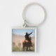A cowboy out working the herd on a cattle key ring