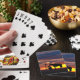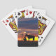 A silhouette of a cowboy kneeling at a cross and a horse with a beautiful sunset playing cards