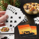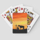 A silhouette of a cowboy kneeling at a cross and a horse with a beautiful sunset playing cards