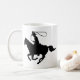 A cowboy riding with a lasso. coffee mug
