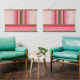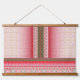 • Middle Section: Below the top design, there are several horizontal bands with different patterns, including geometric shapes and lines in shades of pink, white, and gold.