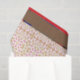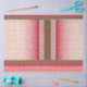 • Middle Section: Below the top design, there are several horizontal bands with different patterns, including geometric shapes and lines in shades of pink, white, and gold.