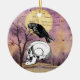 A Crow or Raven and Skull Halloween Purple Moon Ceramic Ornament