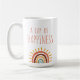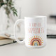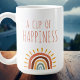 A beautiful gift for tea and coffee lovers! Simple, modern typography with the words "A CUP OF HAPPINESS" and a boho rainbow graphic in earthy tones.