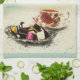 A cup of tea and allsorts candy with quote "There is no trouble so great or grave that can not be much diminished by a nice cup of tea..." tea towel