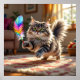 A Cute Fluffy Cat Chasing a Feather Poster