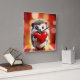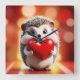 The image is a charming, stylised illustration of an adorable hedgehog holding a large red heart. The background features warm, bokeh lighting with shades of red, orange, and yellow, creating a cosy and affectionate atmosphere.