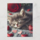 AI generated adorable Valentine's Day kitten fast asleep among the Valentine decor