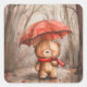 A Cute Teddy Bear in The Rain Square Sticker