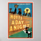 Vintage theatre poster for A Day and a Night featuring several cats on a brick wall looking down at a dog and its owner. The dog is desperately trying to get to the cats and the cats are just having a good ole laugh!