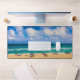 When you can’t get away for a day at the beach, keep the beach with you with the original photograph by ZoeSPEAK on this Desk Mat. It features a view of the ocean under a Florida blue sky filled with puffy white clouds. Sunbathers are lounging along the shoreline of golden coloured sand as the waves roll in.
