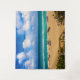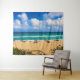 When you can’t get away for a day at the beach, keep the beach with you with the original photograph by ZoeSPEAK on this Wall Tapestry. It features a view of the ocean under a Florida blue sky filled with puffy white clouds. Sunbathers are lounging along the shoreline of golden coloured sand as the waves roll in. Sea grape leaves in the foreground grow along the dunes by the steps leading down to the beach.