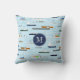 Perfect decor for the river camp, this unique boating themed throw pillow features varied size seafaring vessels on a blue background with custom monogram on a dark blue circle pendant - the pattern includes 2 cargo ships, 2 sailing vessels, 2 antique-style wood boats, 1 fishing boat, a rowboat and a houseboat - close inspection of the pattern reveals people enjoying "A Day On the River" © katz_d_zynes 2020