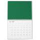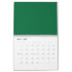 A deep green background contrasted by a crisp whit calendar