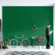 A deep green background contrasted by a crisp whit wallpaper