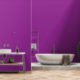 A deep purple background accented by a bright whit wallpaper