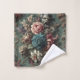 The bouquet sings in madness. A Deranged Dirge blends lush florals—teal roses, pale lilies, blood-tinged blooms—with snarling, operatic grotesques erupting from the arrangement like a scream wrapped in velvet. Scrollwork trembles, vines hum with dissonance, and beauty loses its composure.