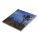 A Desert Road and Joshua Trees at Night Ceramic Tile