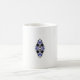 a design of a blue and black flower coffee mug