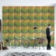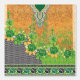 • Motifs: At the top centre, there’s a large paisley design with a yellow background filled with smaller detailed motifs. Below this, there’s a band of green foliage and flowers that transitions into a chequered pattern, followed by another band of green decorative elements.