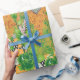 a design of a green and yellow wall hanging wrapping paper