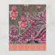 • Central Design: The main part of the fabric showcases large, stylised flowers and paisley shapes in shades of pink, white, and black. These motifs are set against a brown background that has a textured, crackled leather appearance.
