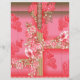 • Colour Palette: The design features a rich combination of red, pink, gold, and beige.