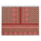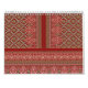 The design appears to be a traditional textile design. It features a symmetrical pattern with a central column and intricate borders on each side. The colour palette includes earthy tones like shades of red and brown, with detailed motifs in white and beige. The patterns consist of geometric shapes, diamond-like figures, and decorative elements that resemble floral designs.