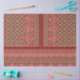 The design appears to be a traditional textile design. It features a symmetrical pattern with a central column and intricate borders on each side. The colour palette includes earthy tones like shades of red and brown, with detailed motifs in white and beige. The patterns consist of geometric shapes, diamond-like figures, and decorative elements that resemble floral designs.