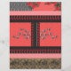 • Middle Section: A broad horizontal band in red with intricate white floral patterns and a black vertical stripe down the centre.