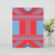 The design features a beautiful, symmetrical fractal-like design. It has intricate, lace-like patterns with a colour scheme of red, blue, and white. The symmetry and complexity of the design make it visually striking and interesting, often associated with mathematical beauty and artistic expression.