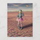 A disco astronaut in poppy meadow flying goldfish postcard
