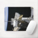 A docked Soyuz spacecraft over the docked space shuttle Atlantis featured with STS-129.
