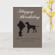 This funny birthday greeting card was designed with a woman who has recently been in a divorce or a break, up in mind. The outside features silhouette drawings of a man and a dog by which the sender promises the birthday girl or woman a "dog" if the now-single recipient is nice. The inside surprisingly identifies the "dog" as a man, with whom the recipient might associate with her ex-husband, or ex-boyfriend. The humourous expression on the card capitalises on the familiar tendency of women to refer to men who are unfaithful, womanising, or just plain messy in romantic relationships as "dogs."