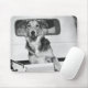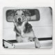 A dog in a car. mouse pad