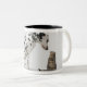 A dog looking at a cat Two-Tone coffee mug