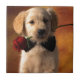 A Dog With A Flower Ceramic Tile