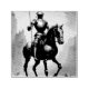 Mounted atop the robotic steed, affectionately named "Robotho," Don Quixote grasps a lance made of sleek, high-tech materials. Robotho itself is a robot horse, intricately designed with mechanical joints and gears, giving it a dynamic and animated appearance. Its legs are poised mid-stride, suggesting movement and action.