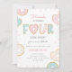 A birthday party invitation for kids, featuring doughnuts.