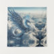A regal dragon suspends above flurry of fluffy clouds. Light blue, almost silver, Huge almost bird like leathery wings and a unique arrangement of talons below. A sturdy scaled tail used like a rudder to adjust the angle of his / her flight, but more likely fight. This tail , the most dangerous part of a dragon. This dragon has a long serpent like neck.