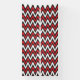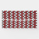 A dynamic chevron pattern in red and black, featur banner