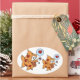 This design features a brown fish with red hearts over his body. The air bubbles are also surrounding red hearts. A smile and goo-goo eyes are the finishing touch on this design. A white or coloured backround is available. These stickers are available in an assortment of shapes and sizes.