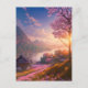 Peaceful digital artwork depicts a simple fisherman's hut by a calm river, illuminated by the golden glow of a setting sun. Cherry blossom petals fall gently to the ground, heralding the arrival of spring and new beginnings. The fisherman's hut is a sanctuary for those seeking solace, and the river is a testament to the cycle of life that continues to thrive with each passing season.