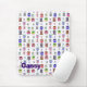 Whimsical colourful mouse pad, with lots of fun colourful cartoon owls against a white background. Purple text at the bottom is ready for you to personalise for yourself or as a gift. Great for home or office and makes a great gift idea for any owl lover.