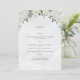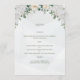 This Menu card has a soft, elegant style with a pastel colour palette dominated by shades of green and white.