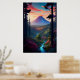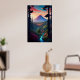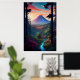 Experience the breathtaking view from the edge of the forest, gazing towards a huge volcano in the distance. The forest's green canopy contrasts with the majestic presence of the volcano, creating a scene of awe and wonder. Immerse yourself in the beauty of this picturesque digital art, where the harmony of nature and the grandeur of the volcano converge in a mesmerising panorama.