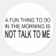 For the sarcasm lover in all of us. Check out this witty “A Fun Thing to Do in The Morning is Not Talk To Me” design on apparel and gifts.