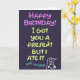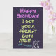 Got you a present, but I ate it, love from dog - a funny birthday card from a goofy looking dog for dog moms and dads with a customisable message