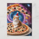 A Funny Santa Hat Christmas Pizza Cat Postcard